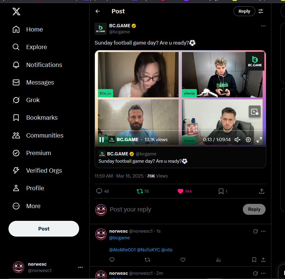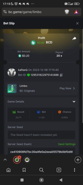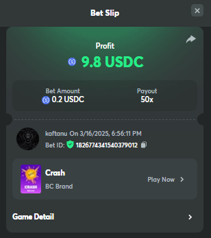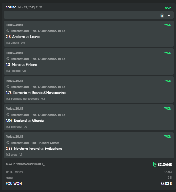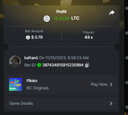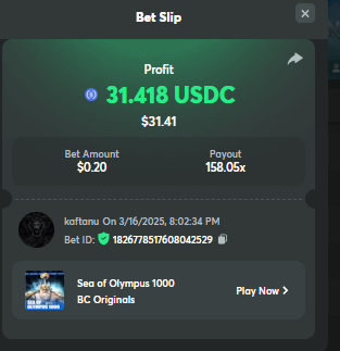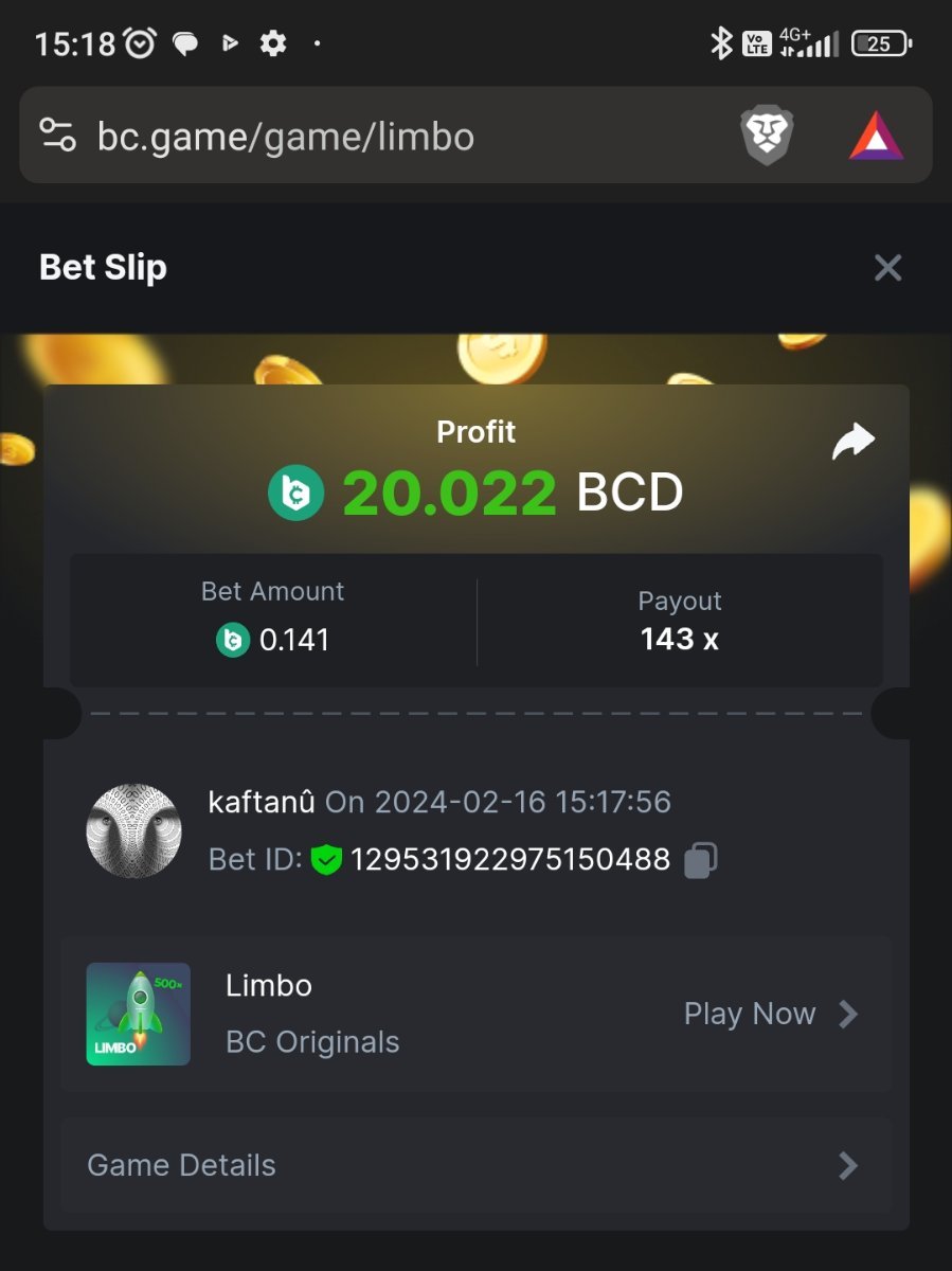 Easy completed: 11/11 Medium completed: 11/11 Hard completed: 11/11 Total completed: 33/33 Easy Deposit at least $50 USD order id: A-1826772919619803028 txid; 8bc5b74cd34e637de638209c51e2ed1f85987b4dcb98b0b022c269b66c4ce66a Follow BC.GAME on Instagram, take a screenshot, and share it with your IG username in the forum! @andersson4416 Share a BC.Game photo or video on your Instagram, tag us #bcgame, and drop the link with your IG username in the forum! https://www.instagram.com/p/DHRJLO0IRWKJeZ93mJxLIc4Hii0yPo-eTA9LGA0/ Follow BC.GAME Twitter Take a screenshot of the following and include your Twitter username in the forum. Like and Retweet BC.GAME's latest post and tag at least 3 of your friends. Take a screenshot and include your Twitter username in the forum. @norwesc1 Follow BC.GAME Facebook. Take a screenshot of the following and include your FB username in the forum. @philip Andersson Win a payout of 20x on the original Limbo game. https://bc.game/game-detail/1826772581589276195 Win a Sports bet with a minimum payout of 1.5x odds (Only for single bets). $20 basebet id: 2518634806175212057 Get a 20x multi in the Arabian Secret slot game. https://bc.game/game-detail/1826774273486895649 Get a 30x multi in the Sugar Fiesta 1000 slot game. https://bc.game/game-detail/1826775790355304227 Activate 2FA security on your BC.Game account. Take a screenshot of 2FA and keep it active till the result is announced. Medium Deposit At least $100 USD order id: A-1827391788888210346 txid: 17d607b0c1744b38fedd5daf1f84185323fb978da9acd4a6f4e9368bf426ac5b Get 50x in the Crash game. https://bc.game/game-detail/1826774341540379012 Get a payout of 73.6x on the original Plinko game Risk-High, Row-10. https://bc.game/game-detail/1826780255898878243 BC original Roulette Single game Win 36x on the on number 0. https://bc.game/game-detail/1826780745485731361 Get 50x in the BC original Starshine Princess 1000 slot game. https://bc.game/game-detail/1826776020089892899 BC original Stellar Rush game Win 50x in the. https://bc.game/game-detail/1826773872535639331 Win a 96.96x Keno bet by selecting numbers 1, 14, 22, 28 (Risk: Medium). https://bc.game/game-detail/1826773213339452195 Get 50x in the Poker Ways slot game.* https://bc.game/game-detail/1826777388308230435 BC original Wukong slot game get 50x multi. https://bc.game/game-detail/1826776665318515235 Buy at least 30 BC Lottery tickets using $BC Token. -or- Buy at least 2 BC Porsche lottery tickets using $BC Token send screenshot in forum post. Win a sports parlay/combo bet with at least 3 matches and a 2.5x minimum payout to qualify. ticket id: 2513131965474025926 HARD Win on Wheel 48x or higher - Row 50, Segment High. https://bc.game/game-detail/1826775668826703138 Score 100x or higher in the Crash game. https://bc.game/game-detail/1826776885560453763 Win CoinFlip game 200x or higher multiplier. https://bc.game/game-detail/1826781114918438177 Stellar Rush get 200x or higher in the game. https://bc.game/game-detail/1826773496030045987 Plinko win 252x or higher in Row 14, High Risk. https://bc.game/game-detail/1826774086715626274 Limbo game is your target to win 200x or higher. https://bc.game/game-detail/1826776723522677793 Get 200x or higher in the Hash Dice game. https://bc.game/game-detail/1826779120727121441 BC Originals Slot Sea Of Olympus 1000 score a win 100x or higher. https://bc.game/game-detail/1826778517608042529 BC Originals Slot Gold of Olympus score a win 100x or higher Dorks of the Deep slot game. (Alternative from 24-Marc https://bc.game/game-detail/1827580461740617506 Get 90x or higher in the Duck Hunter slot game from NoLimitCity. https://bc.game/game-detail/1826778717951623715 Win a 10x+ payout on a Sports parlay/combo bet should consist on 3+ matches to qualify! 2514965600959340817