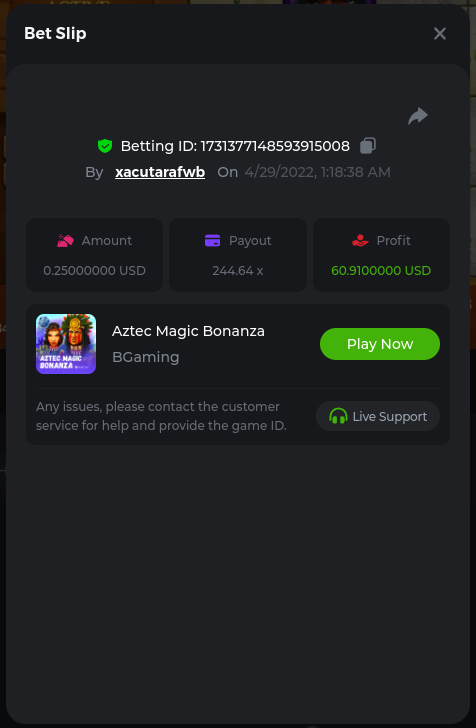Bonanza Billion 241.8x https://bc.game/sd/?sd=10JGDRO125OX77 Aztec Magic Bonanza 244.64x https://bc.game/sd/?sd=10JF3A6J16XD03 Clover Bonanza 249.4x https://bc.game/sd/?sd=10JF54P23D73F7 Lucky Farm Bonanza 89.88x https://bc.game/sd/?sd=10JE0NI1AA9WCZ BC Bonanza 38.56x https://bc.game/sd/?sd=10JF2LWXSCZDHV