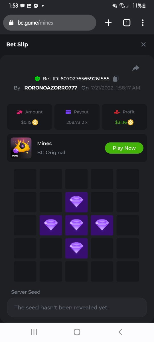 2. Sa totoo lng wala akong paboritong laro , dun ako sa pera o kung saan ako makakakuha ng profit , salamat sa survey na ito na may gantimpala sa magsasaad ng kanyang paboritong laro. Ngayon ay mayroon na akong paboritong laro kung saan ay madalas ako matalo . Ito ay mines . Actually tatlo sila eh baka madisquilified ako kasi sabi isa lng dw . Napili ko ang mines na kung saan ay mas malaki ang tyansa na lumago ang aking deposito na 0.5$ .bakit?! Dito pwede ka magset up ng payout na gusto mo.. Ikaw din pipili ng diamond o hahanap ng bomba na papatay sayo . Hindi tulad ng iba na nakadepende lng sa swerte tulad ng wheel plinko at mdming png iba kung saan mdlas ako talo . Pwede ka mag assume ng payout na kung saan e instant paldo ka pag makabisado mo na . Karanasan ko dito ay nagawa kong mapagapang ang aking napulot na barya na kung saan ay umabot ito nang 600dollars . Mahaba na ba dagdagan p nten . Paborito ko ito kasi gusto ko . Hindi nman pwedeng paborito mo yong ayaw mo . And i thankyou