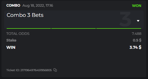Moderator Mat Posted August 14, 2022 Moderator Share Posted August 14, 2022 $250 BC.GAME SPORTS PARLAYS CHALLANGES #17 Start: 15, Aug 00:00 UTC Ends: 21, Aug 23:59 UTC Hello, ladies and gentleman! Sports Parlay Challenges #17! With a prize pool of $250, the Top 7 takes home a grand prize, and the remaining $60 will be split among all other entrants! What is the challenge? Place a Sports Parlay/Combo Bet to qualify for the challenge Only 1 parlay per match. A parlay consists of two or more sports bets on a single ticket with a higher multiplier. The ODDS for each game will be added up and counted as total points. Minimum VIP No Minimum VIP Level Minimum payment There is no minimum multiplier, however, only the top 5 winning parlay multipliers will win the grand prize! Minimum bet size Equivalent to US$ 0.50 Eligible currencies All cryptocurrencies are eligible (except JB) Rewards available 1st place.......$70 2nd place.....$50 3rd Place...... $30 4th Place...... $20 5th Place...... $10 6th Place...... $5 7th Place...... $5 The remaining $60 will be split among all other participants who meet the minimum requirements and minimum stake. How to enter: To participate, post your Ticket ID, along with your Parlay link, as a reply to this thread as follows: Link bet: https://bc.game/sports/?bt-path=%2F%3FbtBookingCode%3D561A9D1 + Ticket ID 2126602890796736992 If you don't know how to get your sports betting link, go here! Along with the screenshot of your accumulated ticket. Ticket ID: 2126602890796736992 If a selection results in a void or push, the bet will remain eligible as long as it remains equal to or greater than a triple bet and meets the odds requirements. Bets withdrawn will not be counted. Hedging is strictly not allowed Please combine all your hits into a SINGLE post. Edit your existing post to get additional hits, don't create a new post. Bets must be placed during the time window specified above. This thread will automatically lock when the time period ends. One (1) entry per family. If someone finds multiple prizes, they will be disqualified from the challenge as well as all future challenges. Failure to follow the instructions will result in the cancellation of your submission. By entering this challenge, you acknowledge that BC.Game has final decision rights over results and placement. Link to comment Share on other sites More sharing options...