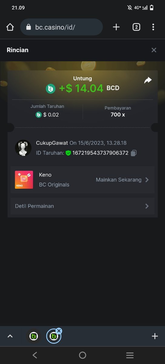 Maksypro Posted June 15, 2023 Share Posted June 15, 2023 Read Carefully Before Start To Hunt Daily Challenges #267 KENO Hunt : Win the highest multiplier Min Multiplier requirement 100x Min Level 4 ๏ธDuration Starting : Now End time : 23.59 UTC Time How to Join? Make screenshot + paste your bet link + UID or Profile link Any coin, with min bet 0.01 USD is allowed (jb/bb/bcl not allowed) Reward Prizes 1st Place.....$7 BCD 2nd Place.....$5 BCD 3rd Place.....$4 BCD 4th Place.....$3 BCD 5th Place.....$2 BCD ๐ต Winners will be announcing next day after Roll Point! Link to comment Share on other sites More sharing options...