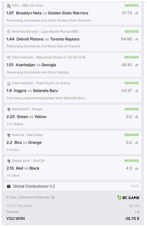 • Make a multi-combo-parlay bet using the sports matches and bet-markets of your choice