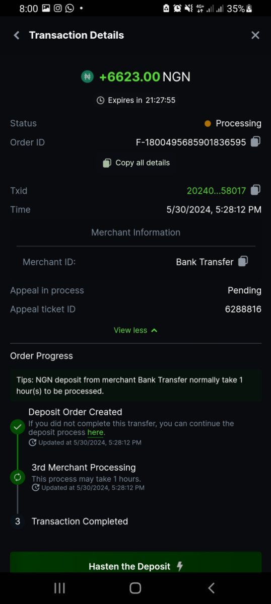 Puyefbkonpyb Posted December 18, 2023 Share Posted December 18, 2023 I made a deposit into my BCgame account using the provided merchant bank details provided to me and I'm yet to see it reflect on my account over 7 hours after. Kindly resolve this quickly see Link to comment Share on other sites More sharing options...