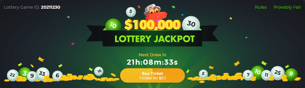 • BC.Game lottery is really cool and fun. With just $0.10 you can win up to $100,000.