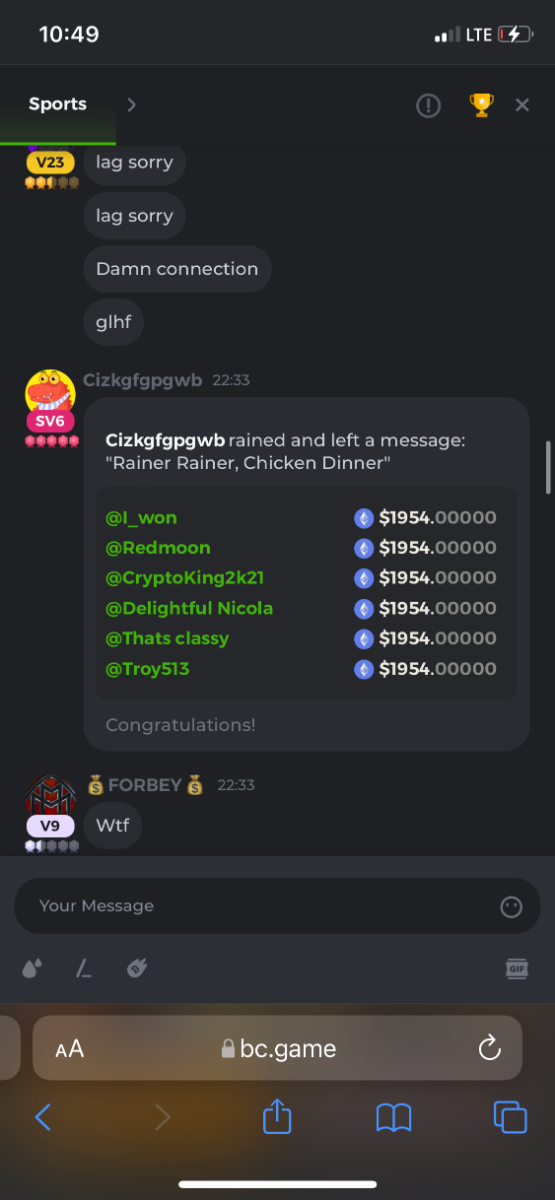 After tipping and raining a bunch i did go back and play. I knew i wasnt supposed to. But i did. And just as i expected, i lost all of it. It was fun though it may not spund like it. There really is no easy way of explaining how a loss is still a gain. I really enjoyed tipping other players so much that i made a new goal for my game playing here at bc.game. the first time i win 2 BTC i am going to do one of two things. Ima click the first player i see in chat and tip them 1 BTC. Or ima rain 1 btc on 10 players. Which is going to be a very exciting day when it happens.